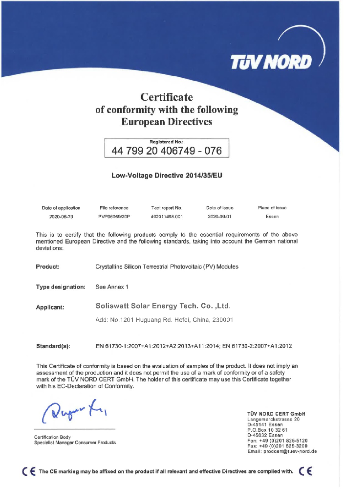 | Certificate: | CE/TUV |